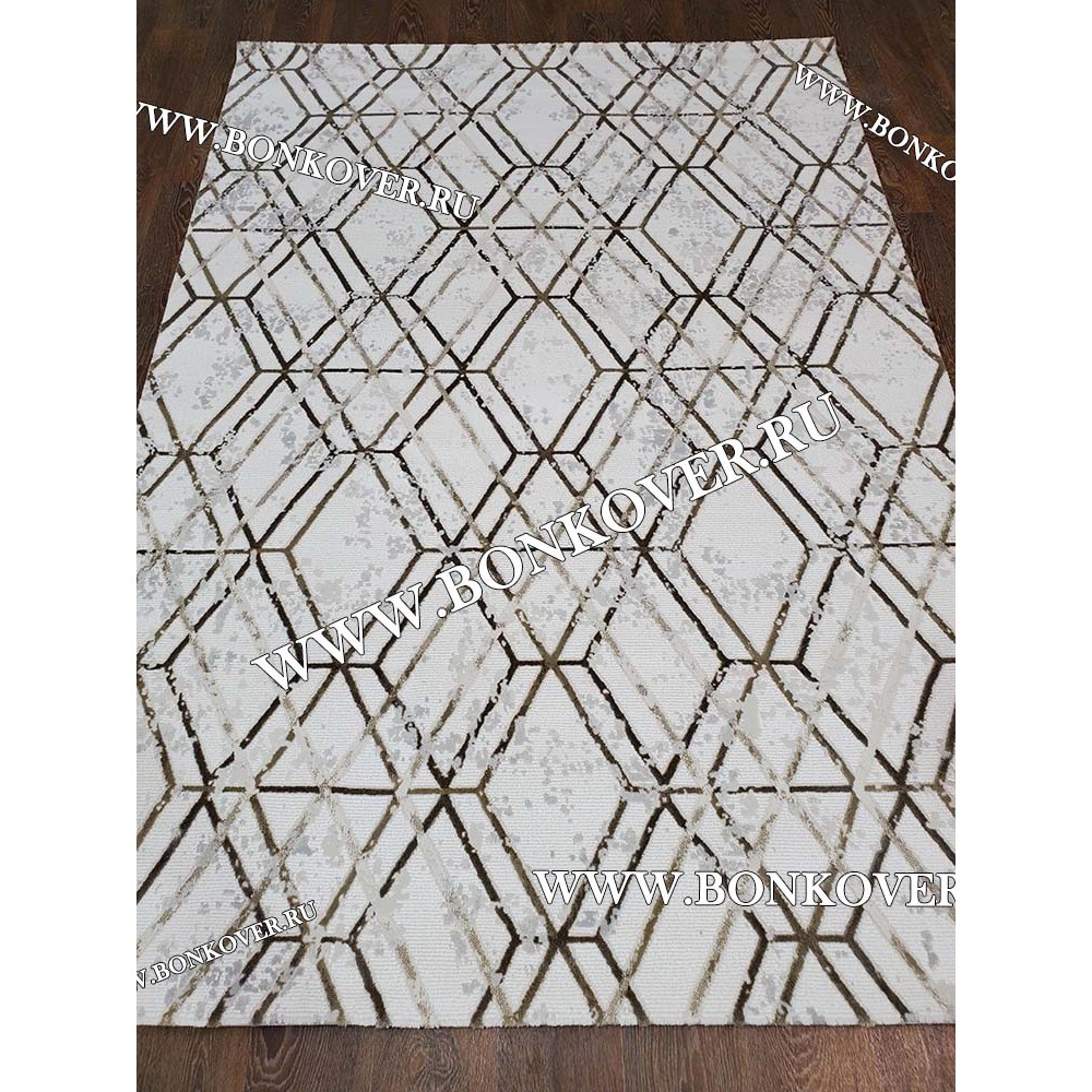 Изящный Ковер Для Гостиной Бежево-коричневый Ромбы Дизайн 33 наполняет интерьер жилого пространства теплом и уютом, гармонично сочетает в себе изящество и стиль. Он соткан из высококачественных материалов, комфортный и долговечный.