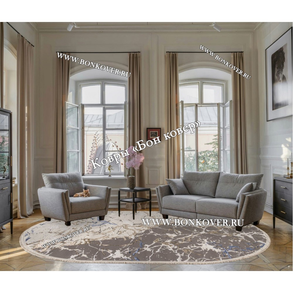Изящный Турецкий Ковер Для Гостиной Абстракция Дизайн 03 Овал наполняет интерьер комнаты теплом и уютом, гармонично сочетает в себе изящество и красоту. Он изготовлен из экологически чистого сырья, комфортный и долговечный.