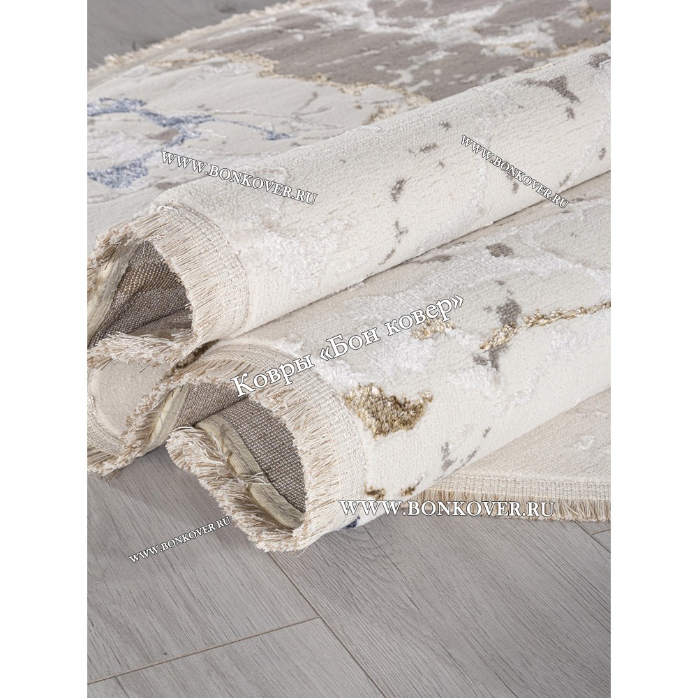 Ковер отличного качества. Ворс плотный, невысокий, приятный. Цветовая гамма подобрана очень стильно. Подойдёт к любому интерьеру. Размер чуть меньше заявленного ( 154х230). Упакован трубочкой . Доставили быстро.