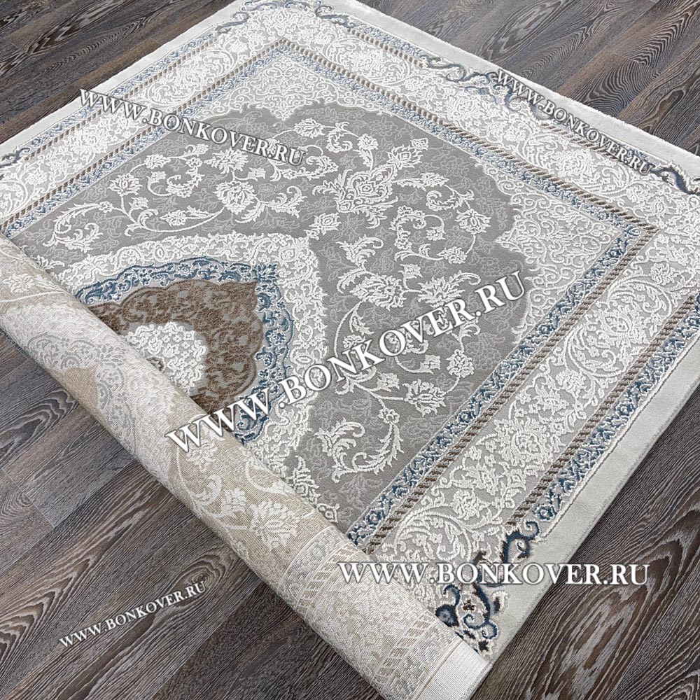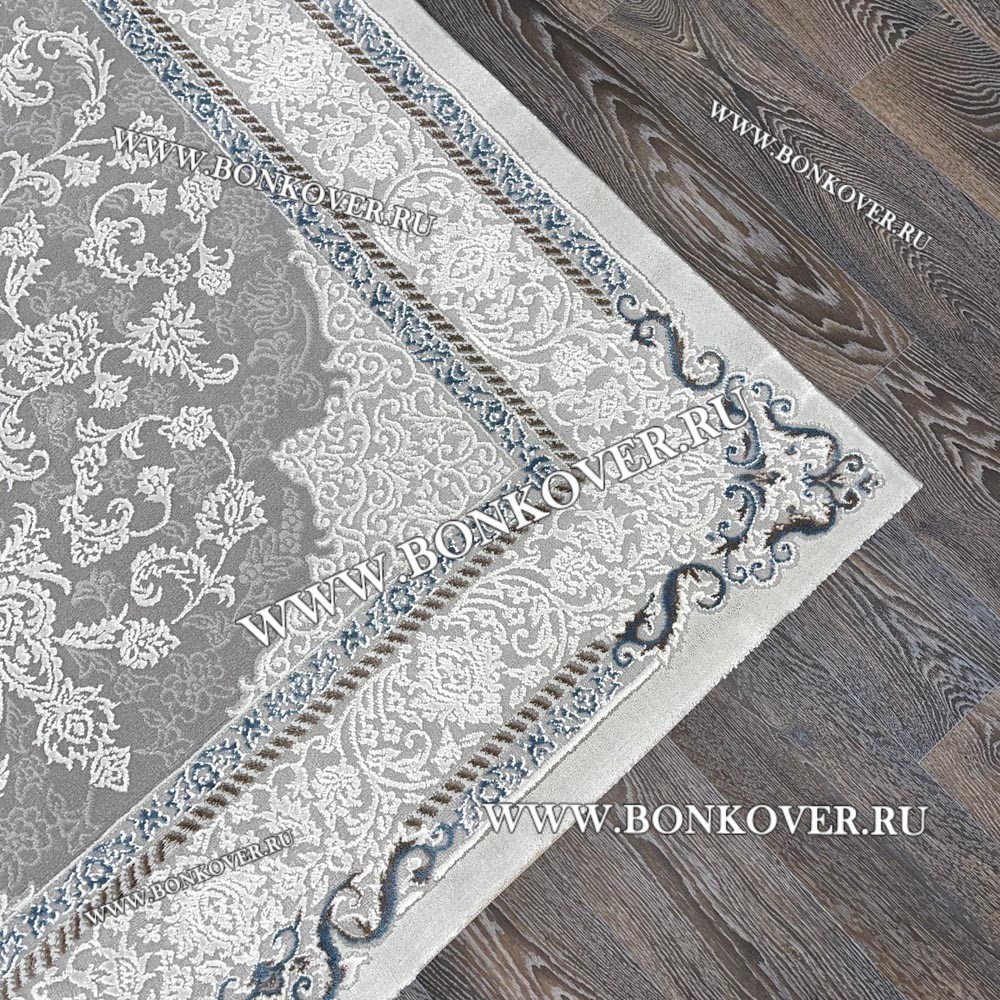 Шикарный Турецкий Ковер Для Гостиной Дизайн 27 Синий с Серым Прямоугольный наполняет интерьер жилого пространства теплом и уютом, гармонично сочетает в себе изящество и стиль. Он соткан из современных материалов, прочный и долговечный.