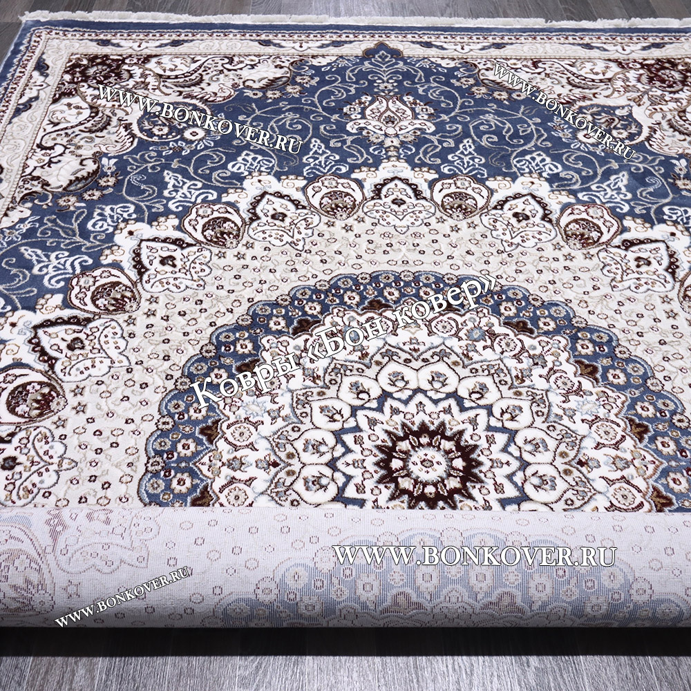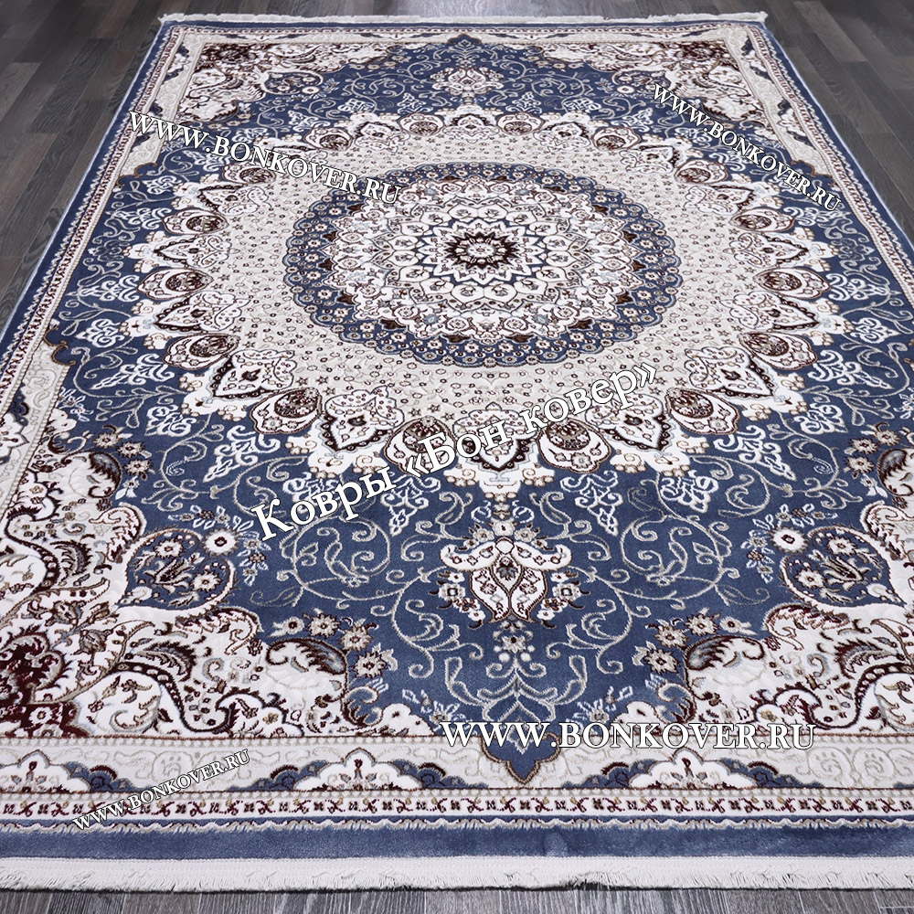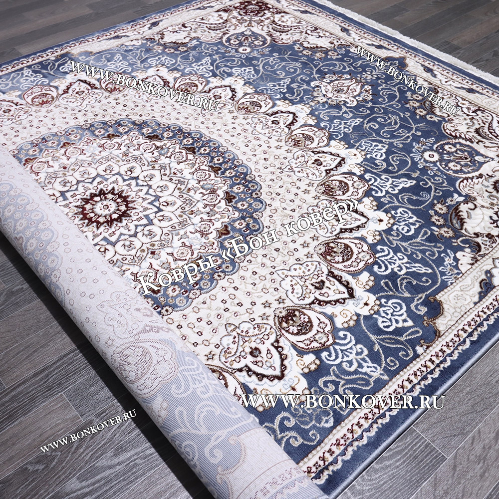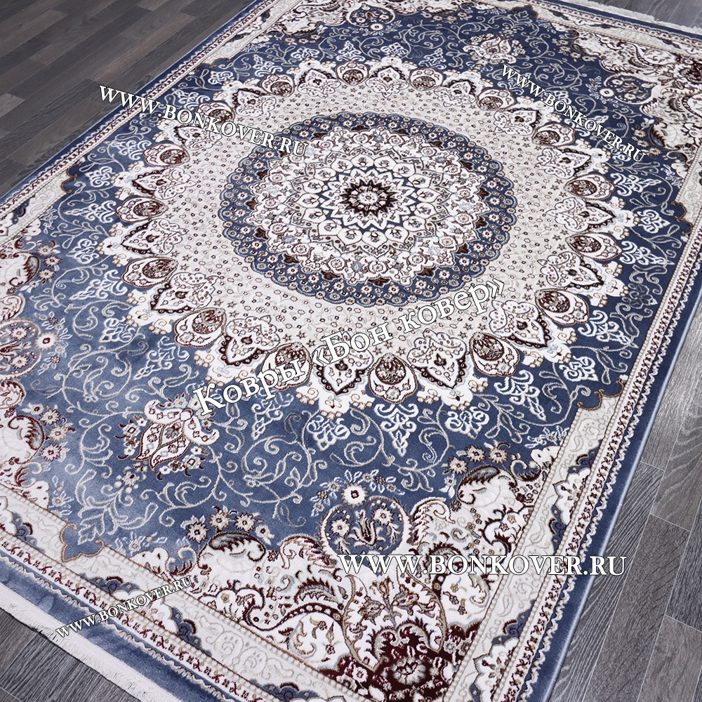 Импозантный Турецкий Ковер Медальон дизайн 87 Синий наполняет интерьер вашего дома теплом и уютом, гармонично сочетает в себе изящество и красоту. Он соткан из износостойких материалов, прочный и долговечный.